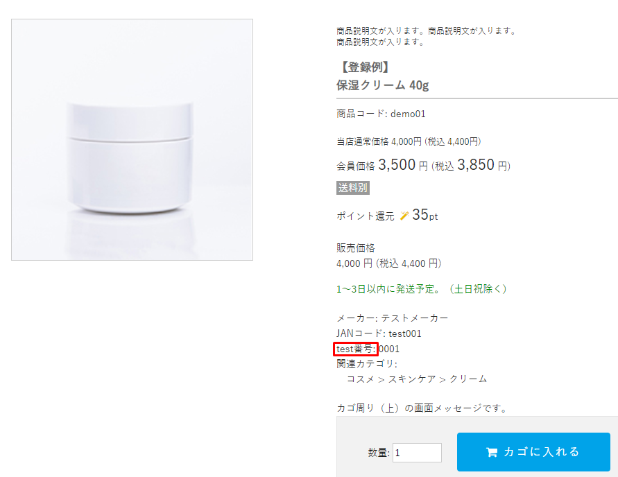 商品詳細ページでの「製造番号」の表記を変更できます。