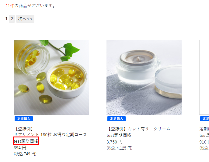 カテゴリーページでの「初回定期価格」ラベルの表記を変更できます。