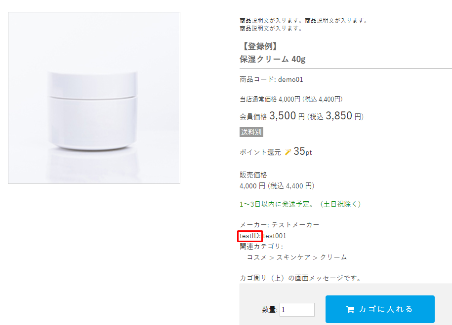 商品詳細ページでの「カタログID」の表記を変更できます。