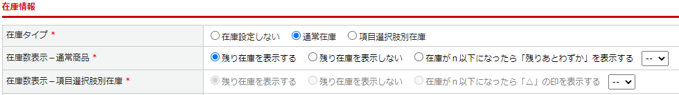 「在庫タイプ」の設定で「通常在庫」「項目選択肢別在庫」のどちらかを選択時、