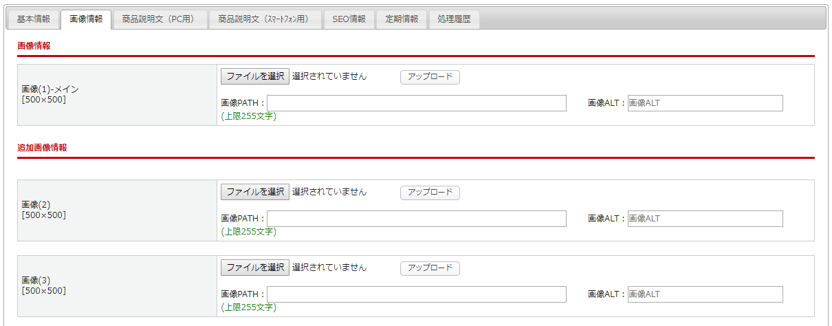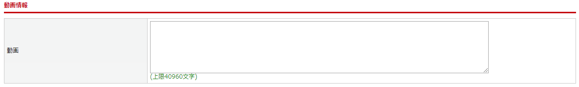 | 動画 | 商品ページに動画をアップすることが可能です。 動画の項目に動画サービスにて作成されるHTMLソースを記述してください。 |