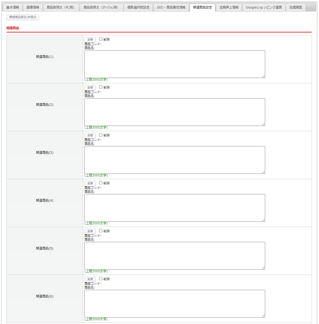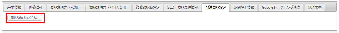 【関連商品表示/非表示】ボタンを押すと、関連商品の設定が閉じ、非表示になります。