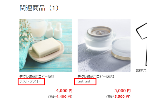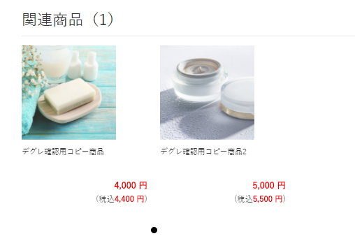 関連商品を設定します。 テキストボックスに商品紹介やコメント等を自由に入力できます。(上限3000文字) 表示例:関連商品名の下にテキストを挿入した場合