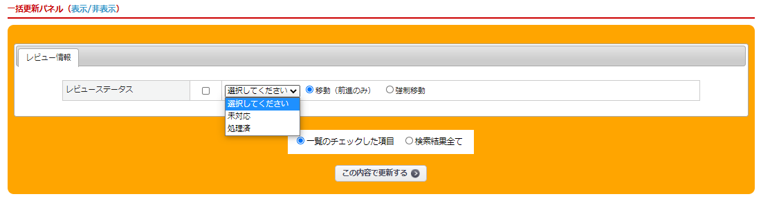 レビューステータス 手動でのレビューステータスの更新を行います。