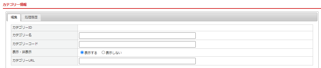 【カテゴリの新規登録】ボタンをクリックすると、カテゴリ登録・編集画面へ遷移し