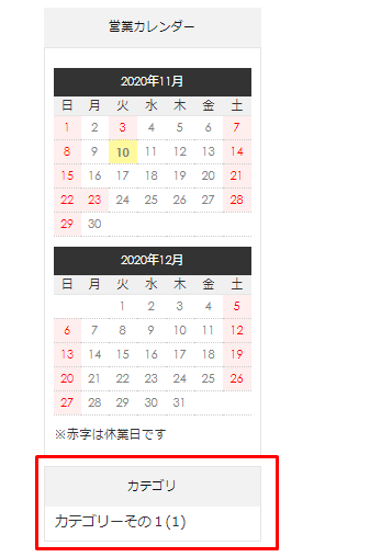 | カテゴリ―名 | カテゴリー名を入力します。 表示例をご確認ください。 |