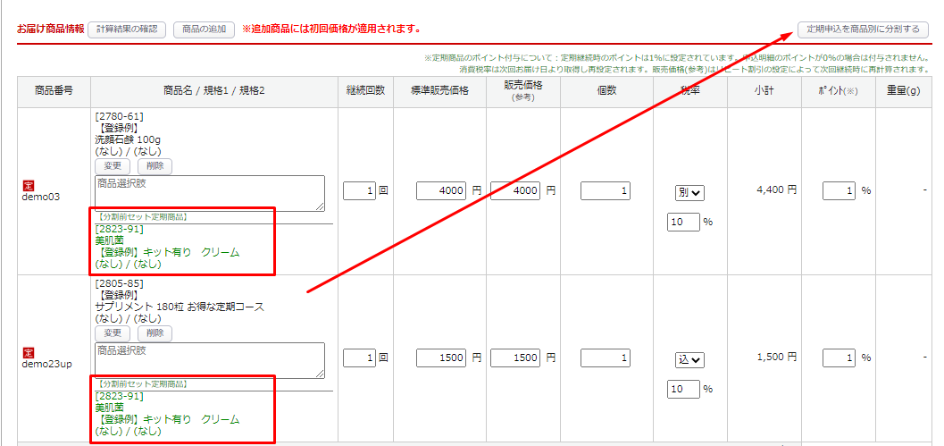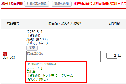 - 管理画面-定期申し込み変更画面の「定期セット商品分割」