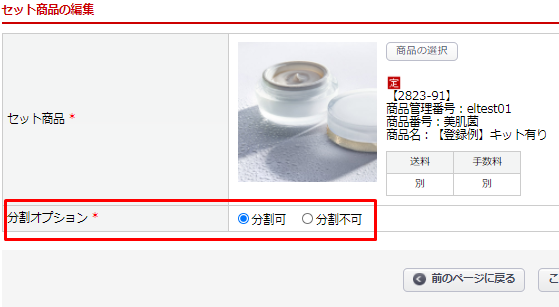 ご利用の場合は、セット商品管理画面にて「分割オプション」を[分割可]に設定してください。