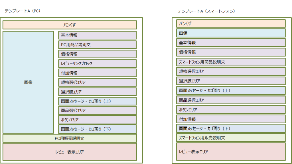 商品ページのレイアウトは以下Aのみ設定可能です。