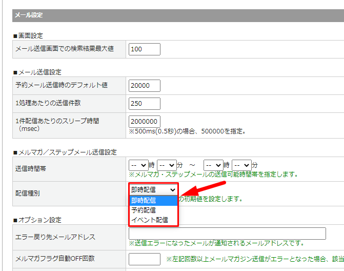| メルマガ送信設定 | 対象のメルマガ送信設定を選択 | ||