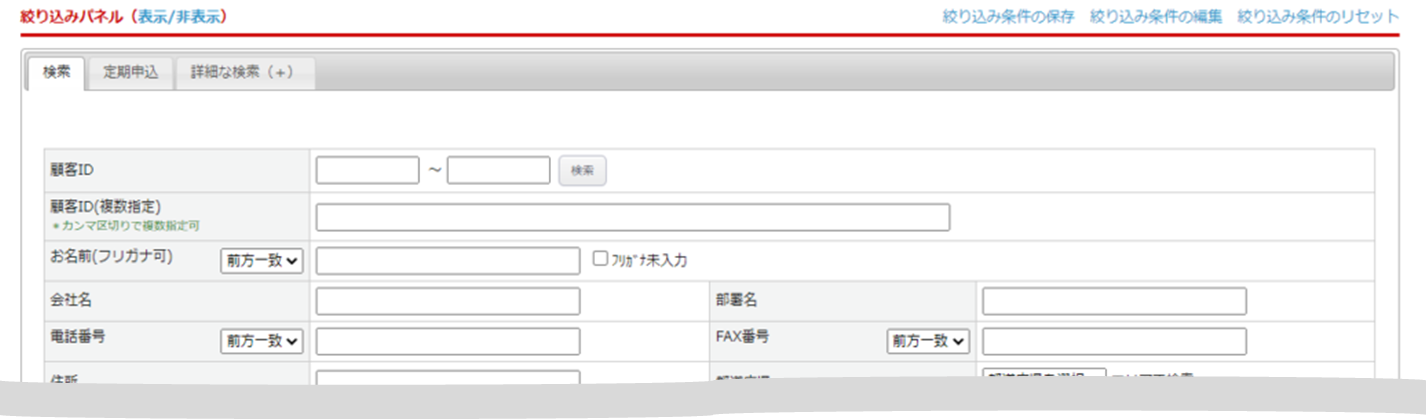 | 顧客詳細 | 顧客>顧客登録 の[顧客詳細]の内容を指定(部分一致) | ||