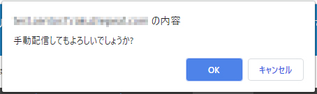 手動配信の「手動配信」リンクをクリックすると、「手動配信しても宜しいでしょうか?」とポップアップが表示され、【OK】をクリックします。