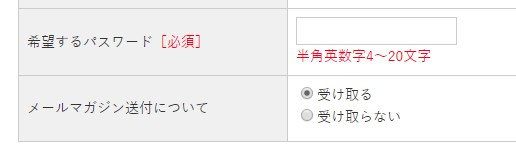 メールマガジンの受け取り可否を選択できる設定です。