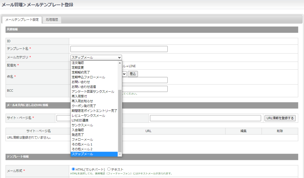 メールカテゴリは「ステップメール」を選択し、内容を登録してください。