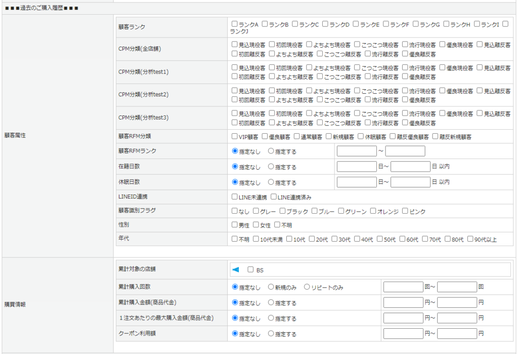 | 過去のメール送信履歴(除外条件) | 過去のメール送信履歴(除外条件)を指定 |