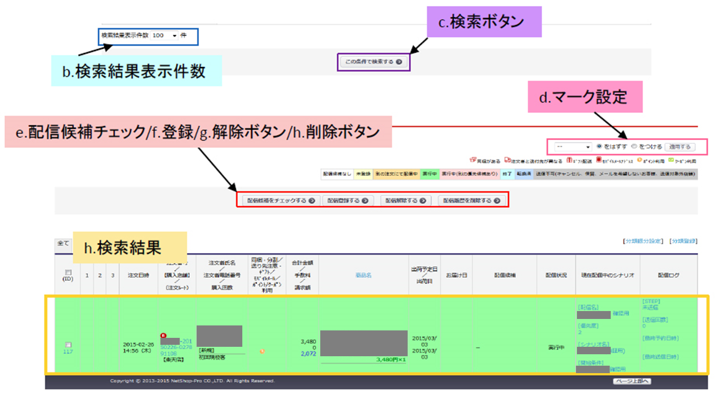 | h.配信履歴削除ボタン | IDの上のチェックボックスにチェックを入れ、「配信履歴削除ボタン」をクリックし、配信履歴の削除を行います |