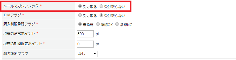 | ②顧客識別フラグ | 顧客に識別フラグをつけている場合、フラグの種類をチェック |