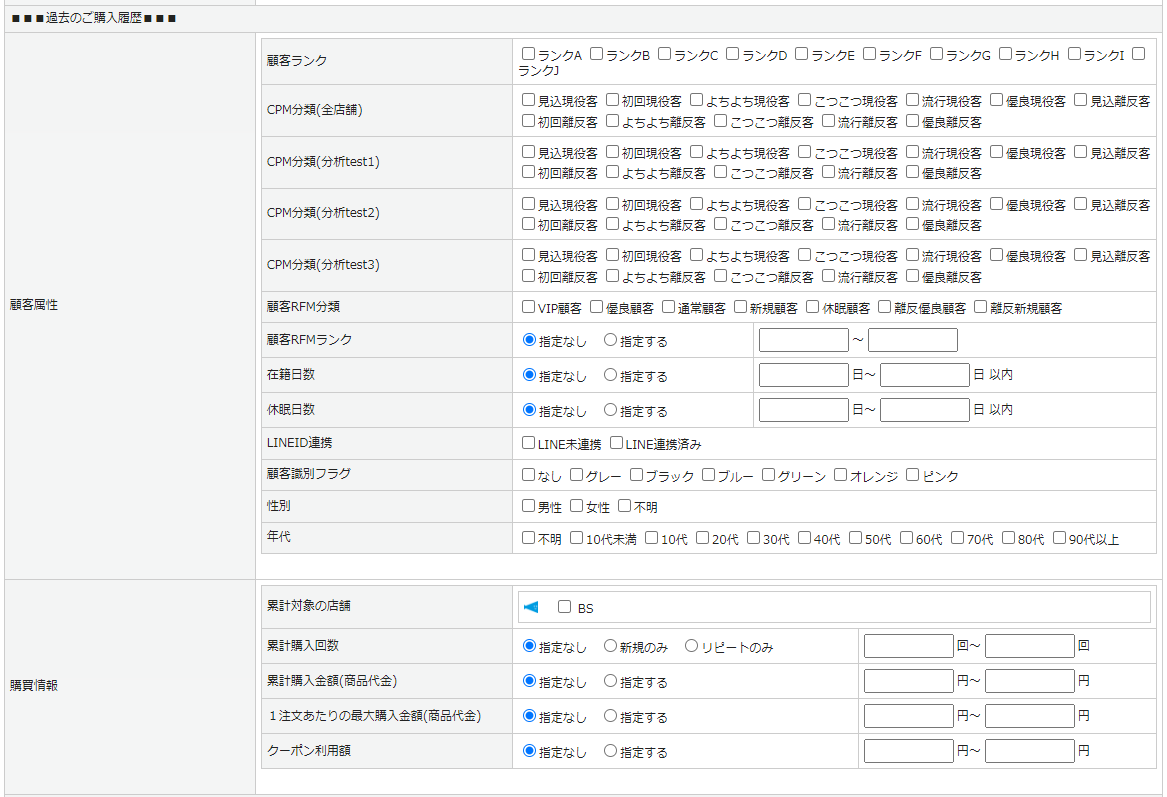 | ⑤RFM分類 | 顧客RFM分類に該当するランク名称をチェック |