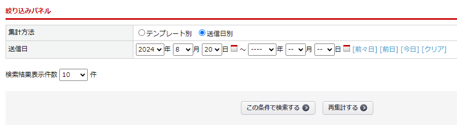 集計方法・送信日を指定し、【この条件で検索する】ボタンをクリックします。