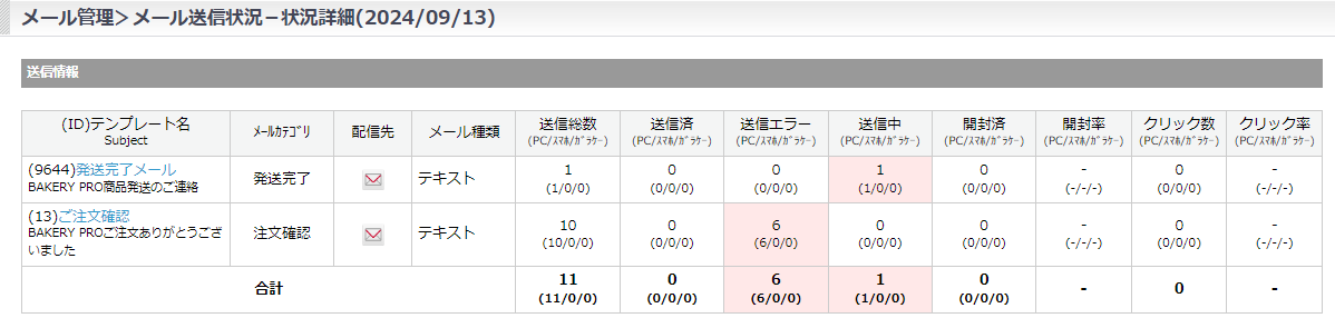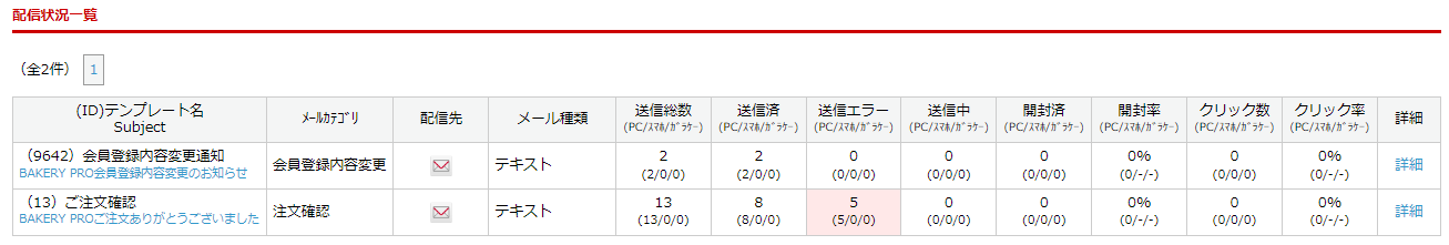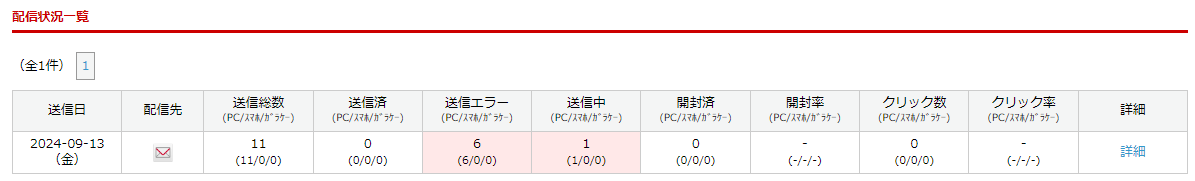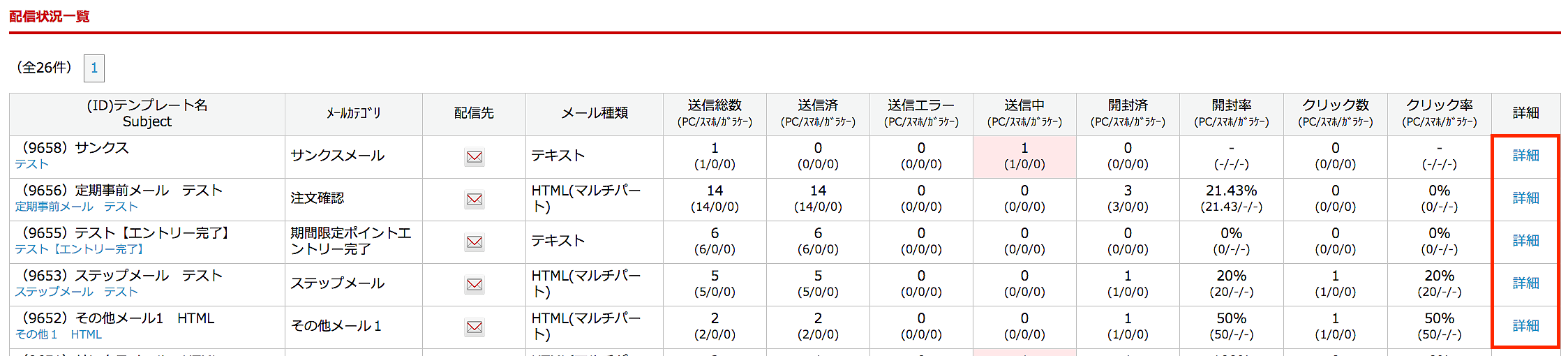一覧の右端の「詳細」をクリックすると、詳細画面(配信状況)が表示されます。