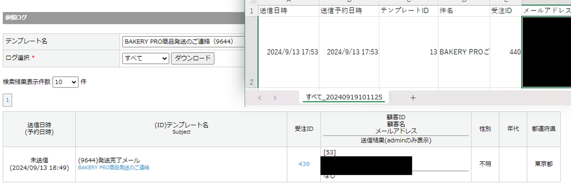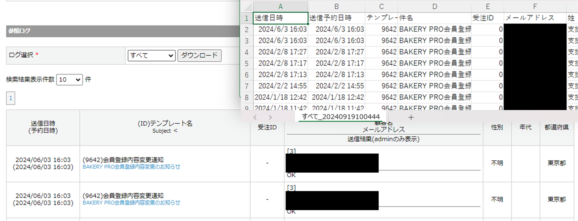 「ログ選択」のプルダウンから状況を選択して【ダウンロード】ボタンをクリックすると、