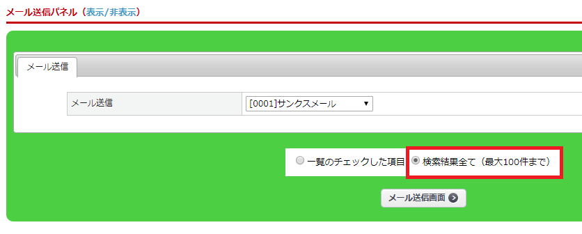 ※メール送信パネル>メール送信画面>「テストメール送信」