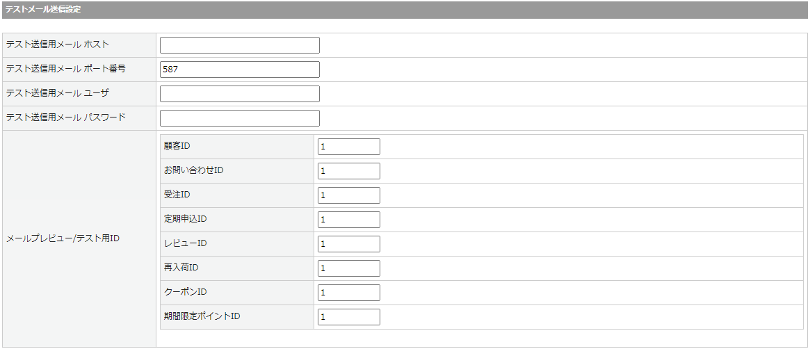 テスト送信用メール ポート番号 SMTPポート番号を入力します。