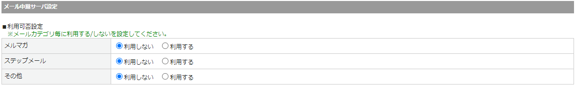 利用可否設定 ※メールカテゴリ毎に利用する/しないを設定してください。