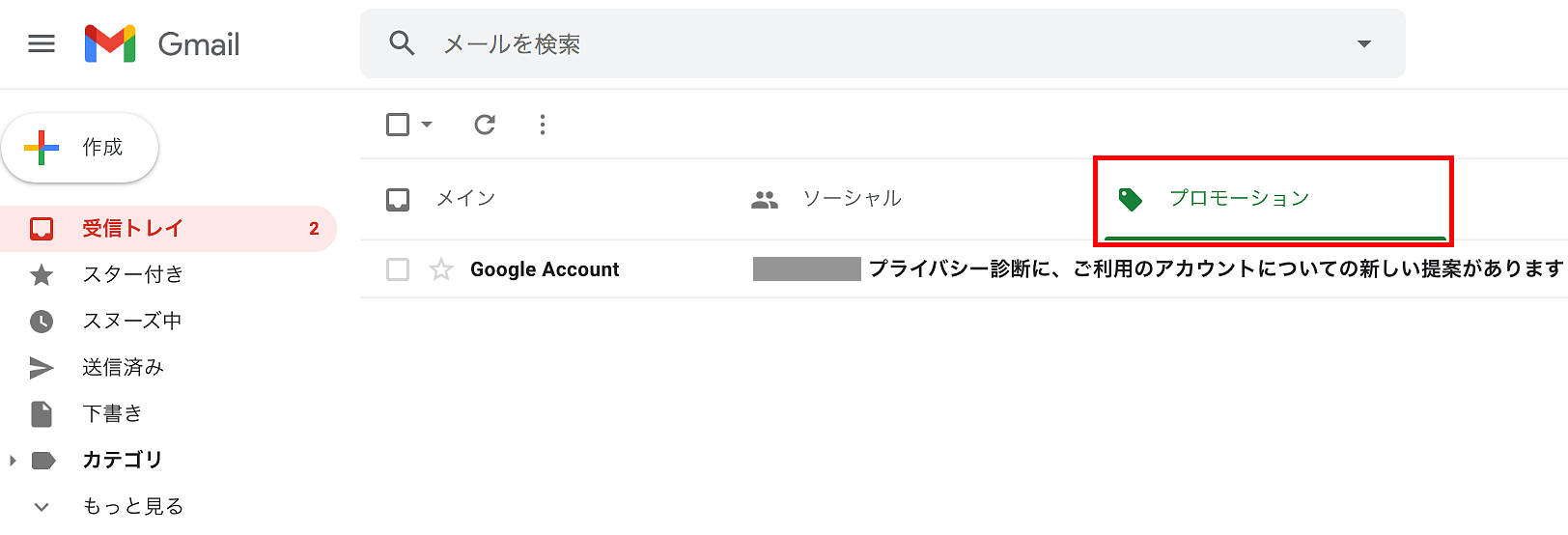 Gmailで受信したHTML形式のメールなどは広告とみなされ、プロモーションタブに振り分けられることがあります。