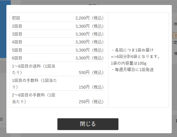 送料は初回550円、2回目~4回目はサイクル毎に550円、5~6回目550円