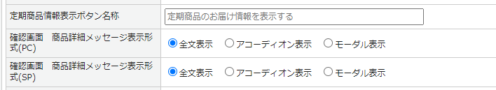 商品詳細メッセージ表示形式は、通常商品および定期商品それぞれで設定が可能です。