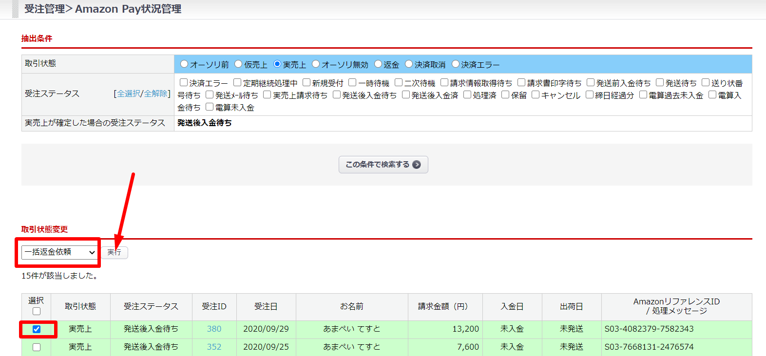 • 受注>AmazonPay状況管理 からの一括返金依頼