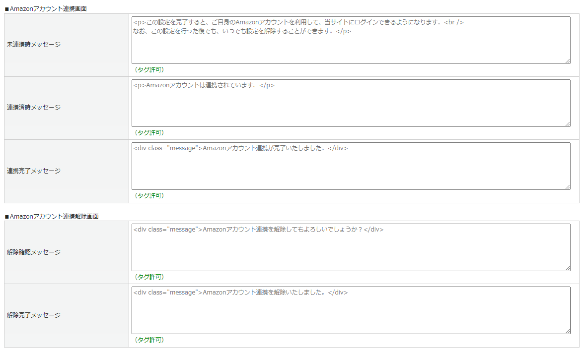 ※この項目が未入力でも、Amazonアカウント連携のリンクがデフォルトで設定されています。
