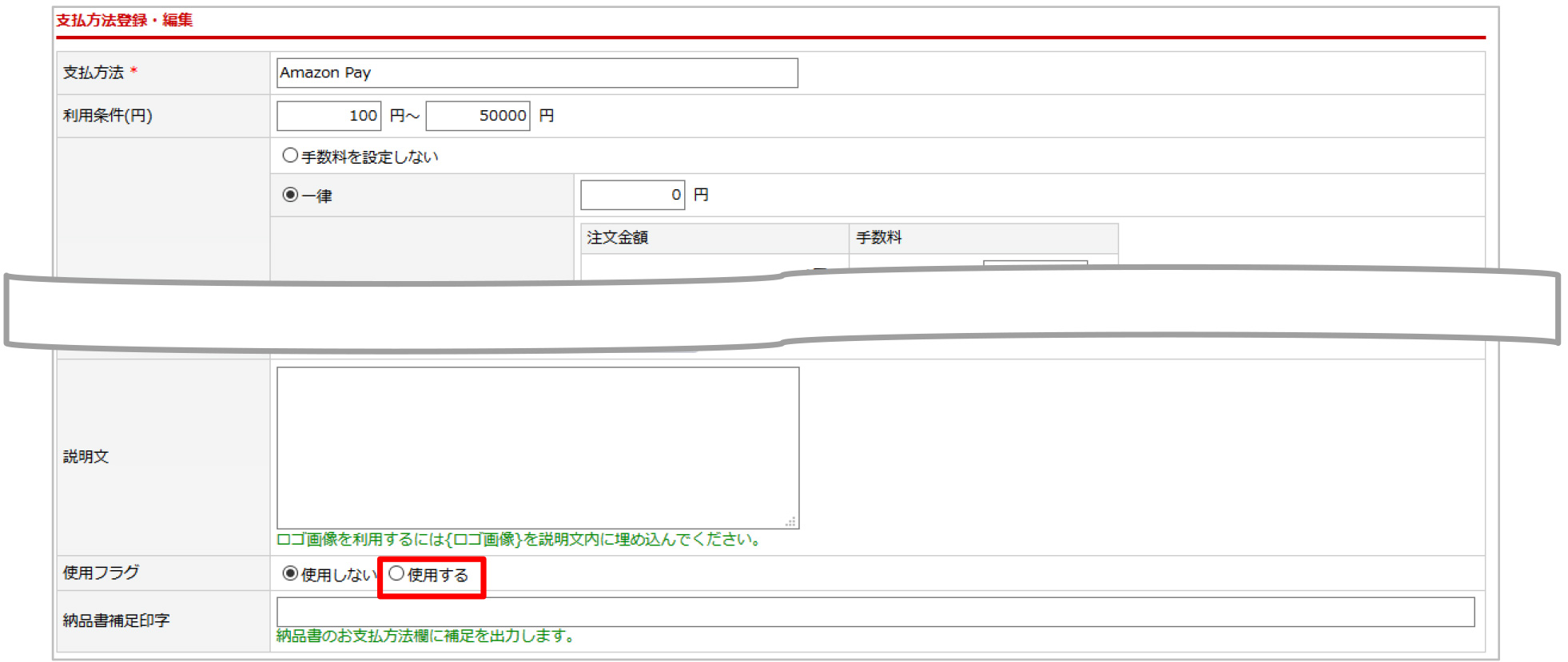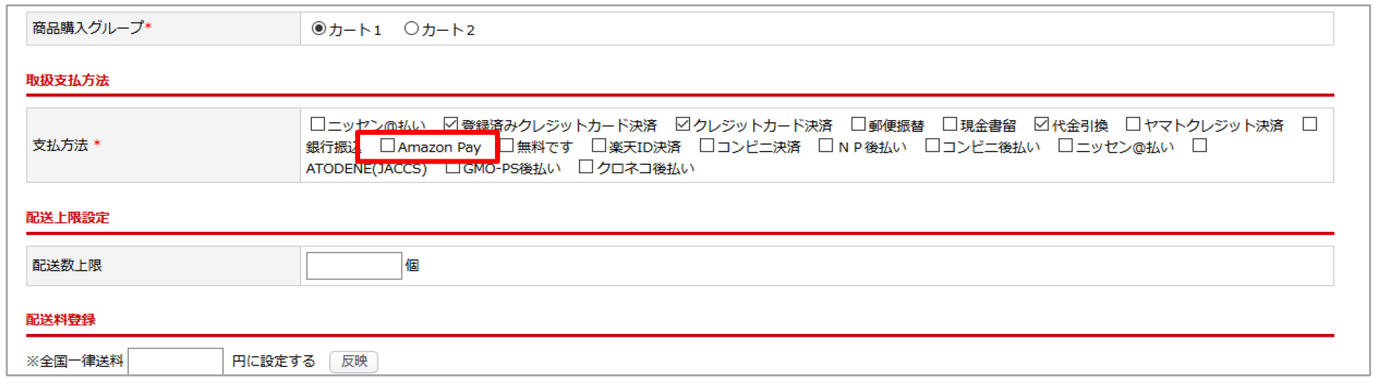 2)取扱支払方法の「Amazon Pay」にチェックを入れて保存します。