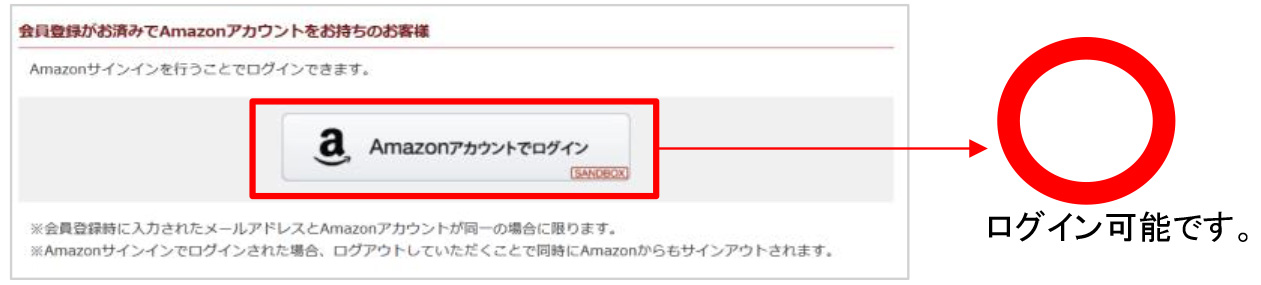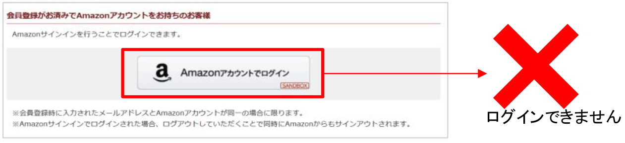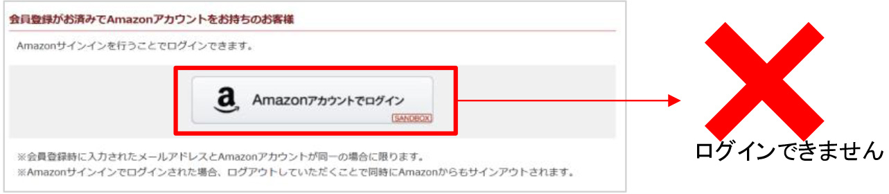 Amazonアカウントでのログインはできません。
