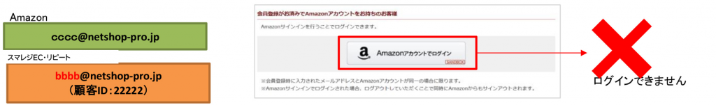 AmazonアカウントとスマレジEC・リピートの登録メールアドレスが同一の場合、