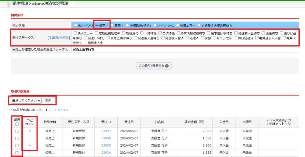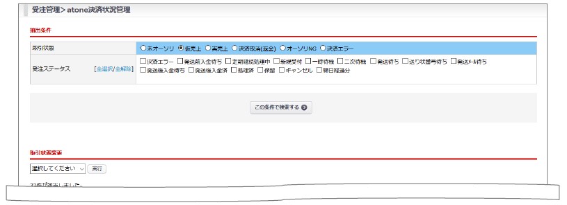 受注管理> atone 決済状況管理から一括処理を行う場合