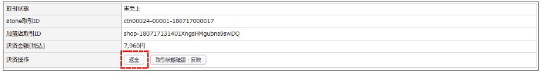 – 返金:取引の取消(キャンセル)処理を実施 ※取引状態が「実売上」の場合にのみ表示