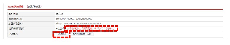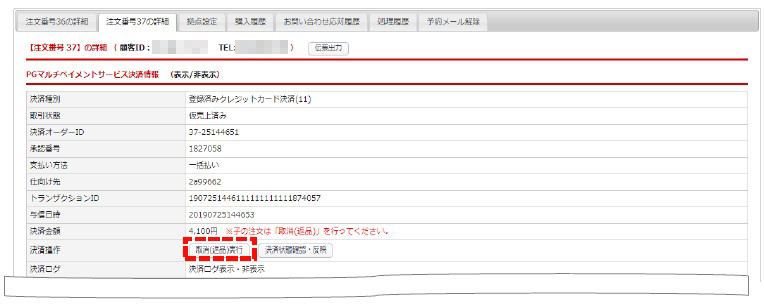 決済操作の【再オーソリ】ボタンをクリック→取引状態が「決済取消(返金)」から「仮売上」となります。