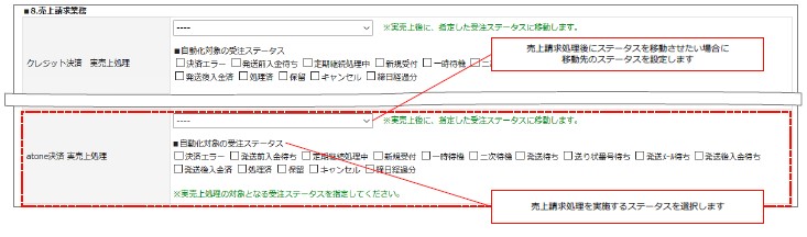 8. 売上請求業務「 atone 決済 実売上処理」より自動売上請求処理の設定が可能です。