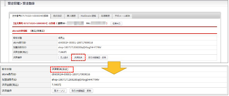 – 決済取消:取引の取消(キャンセル)処理を実施