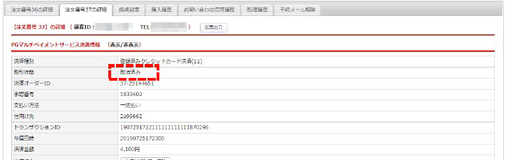 – 取引内容更新:決済金額および注文者情報(注文者または送付先)の変更処理を実施 ※該当注文に対し金額および注文者情報変更をした場合にのみ表示