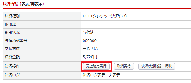 決済操作【売上確定実行】ボタンをクリックしてください。