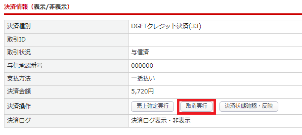取引状態「与信済」の決済をキャンセルし「与信取消済」状態にします。