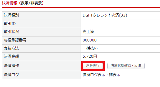 取引状態「売上済」の決済金額を返金し「返金済」状態にする処理です。