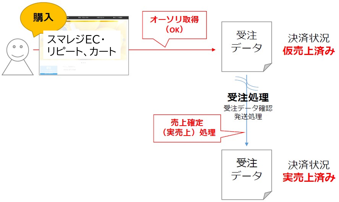 ※上記は処理の一例(※注文時の処理区分が仮売上、オーソリエラーは注文完了しない設定の場合)です