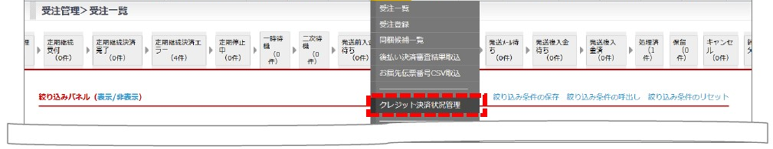 ・受注管理>クレジット決済状況管理から一括処理を行う場合