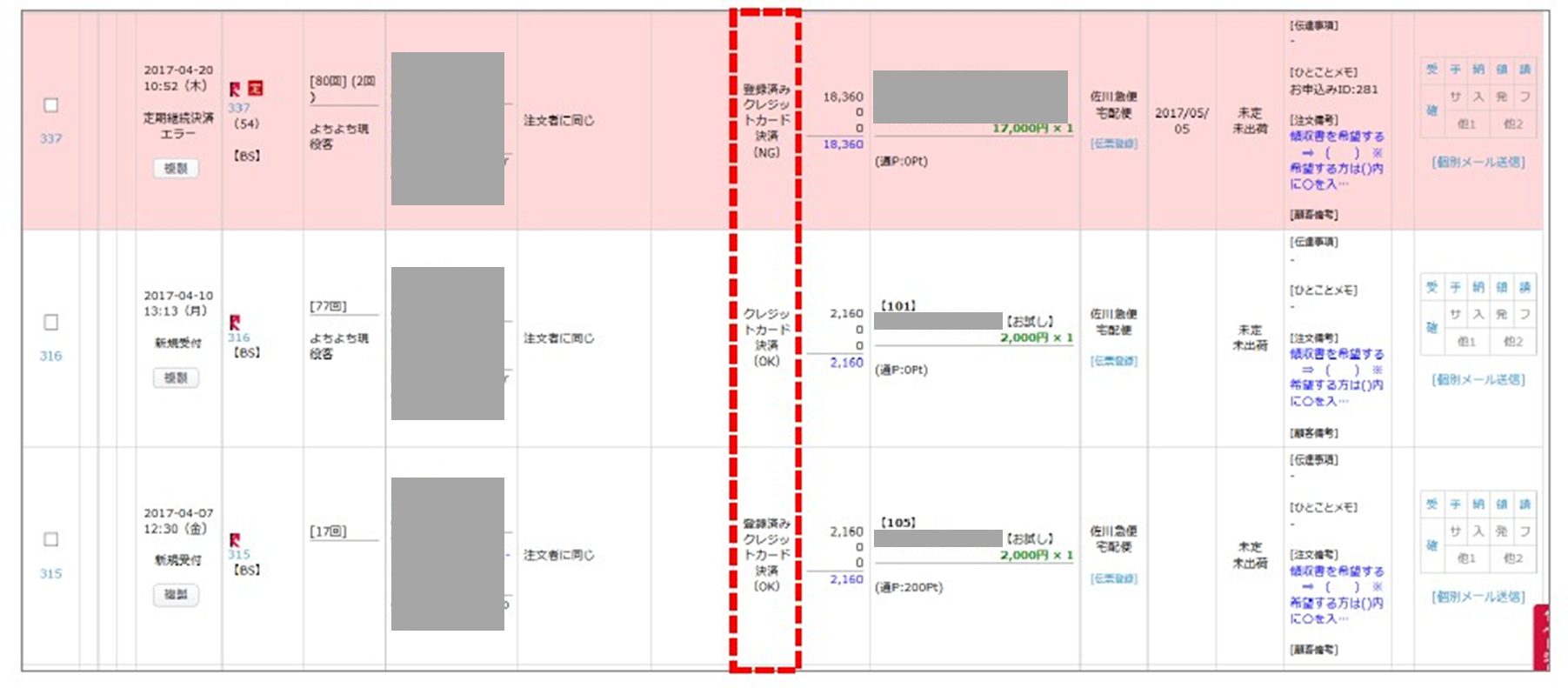 •決済ログ:GMOとのやり取りのログが表示されます。