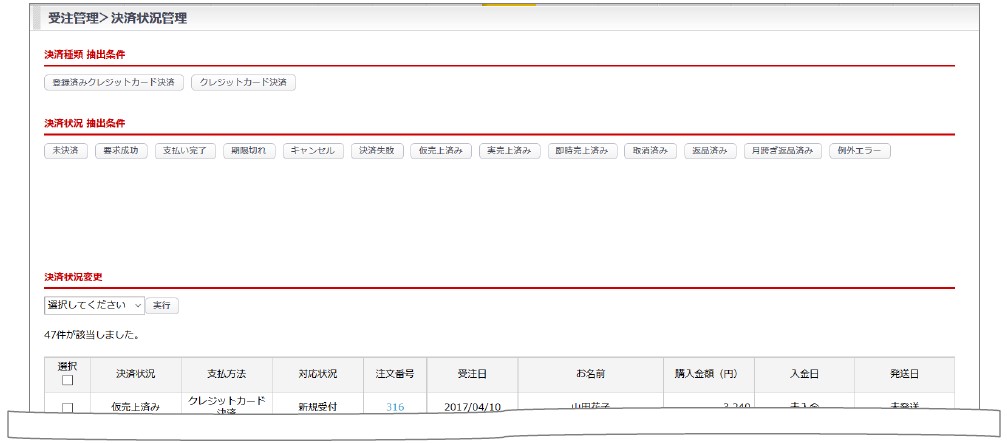 受注管理>クレジット決済状況管理から売上確定(実売上)処理を行う場合