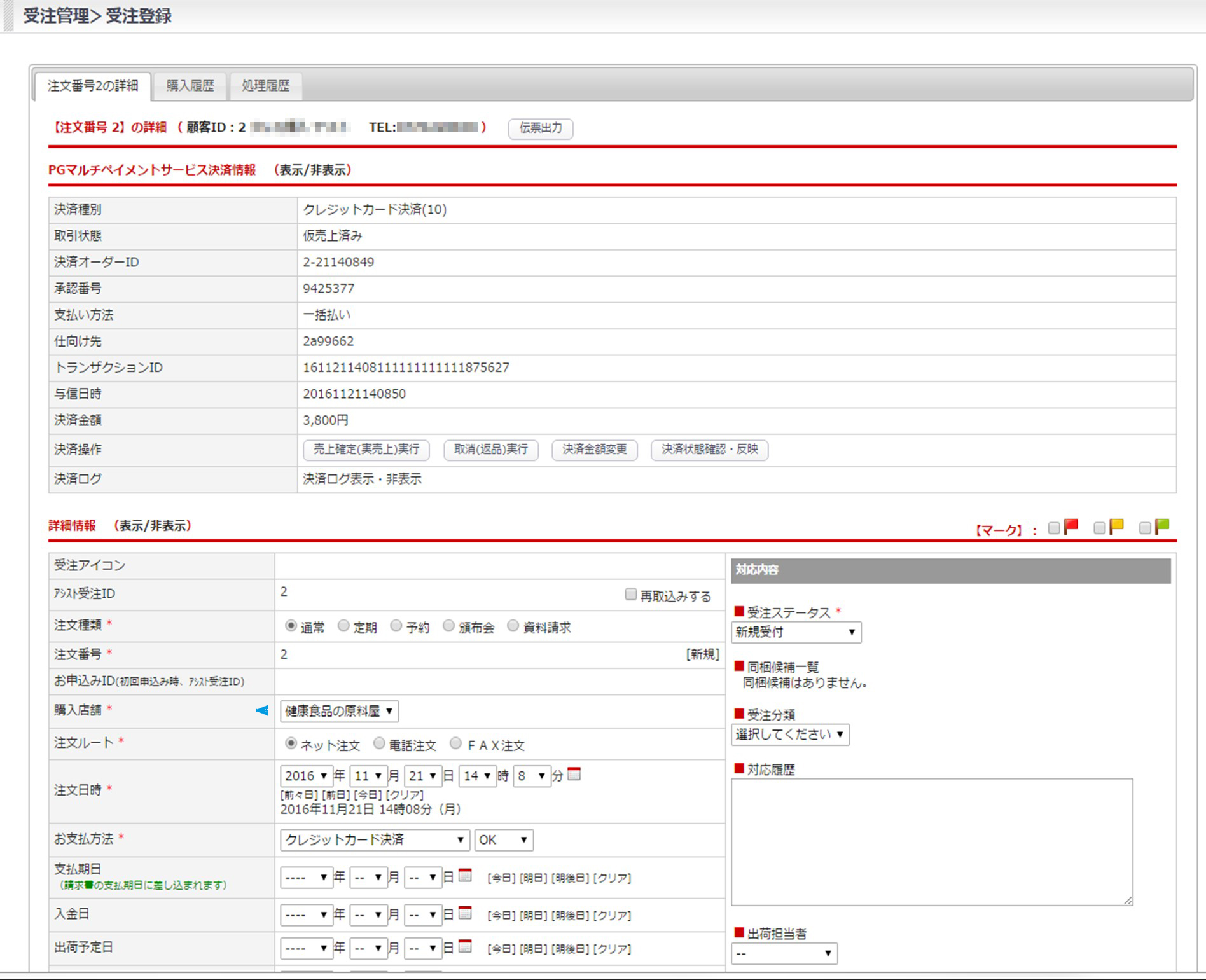 オーダーIDや承認番号等、スマレジEC・リピートの受注編集画面に記載の内容と一致していることを確認します。
